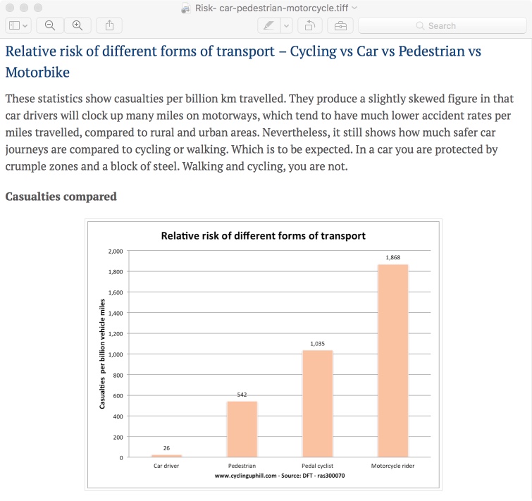 Your assumption that I will be advocating for even more active transport use is misplaced. Cyclists are especially vulnerable as much data like this shows that cyclist are 10 times more likely to die on City roads that motorists.